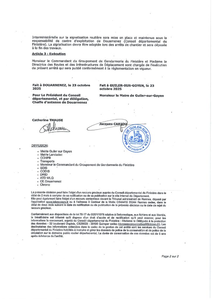 Arrêté temporaire de circulation : route bloquée