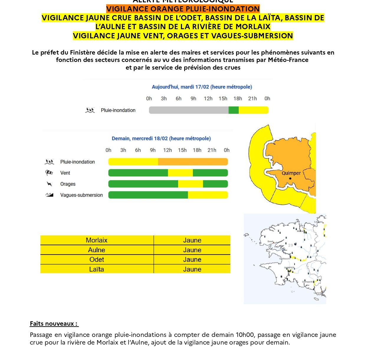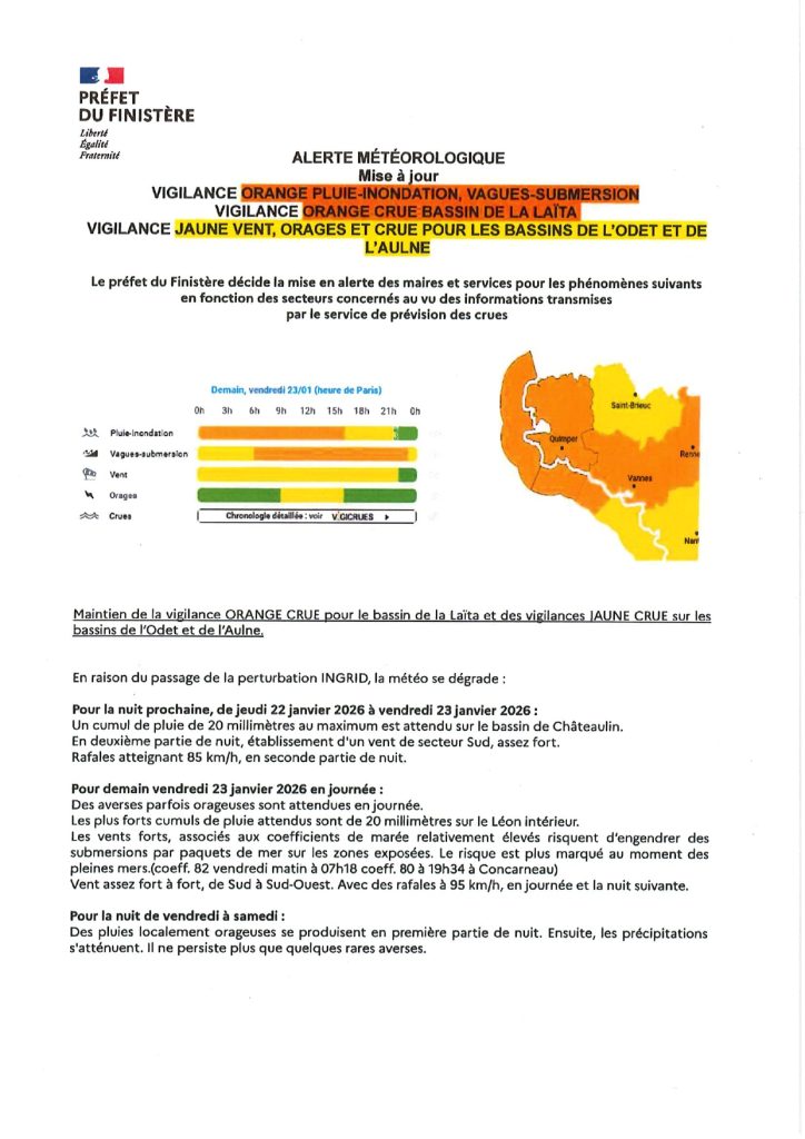La Préfecture du Finistère a placé le département en vigilance jaune pour :